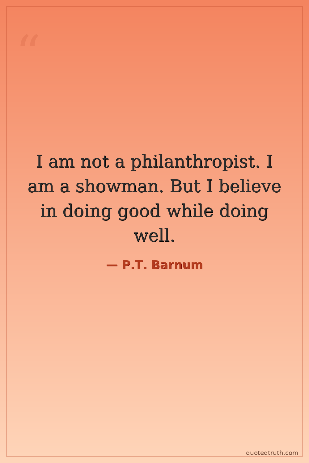 I am not a philanthropist. I am a showman. But I believe in doing good while doing well.