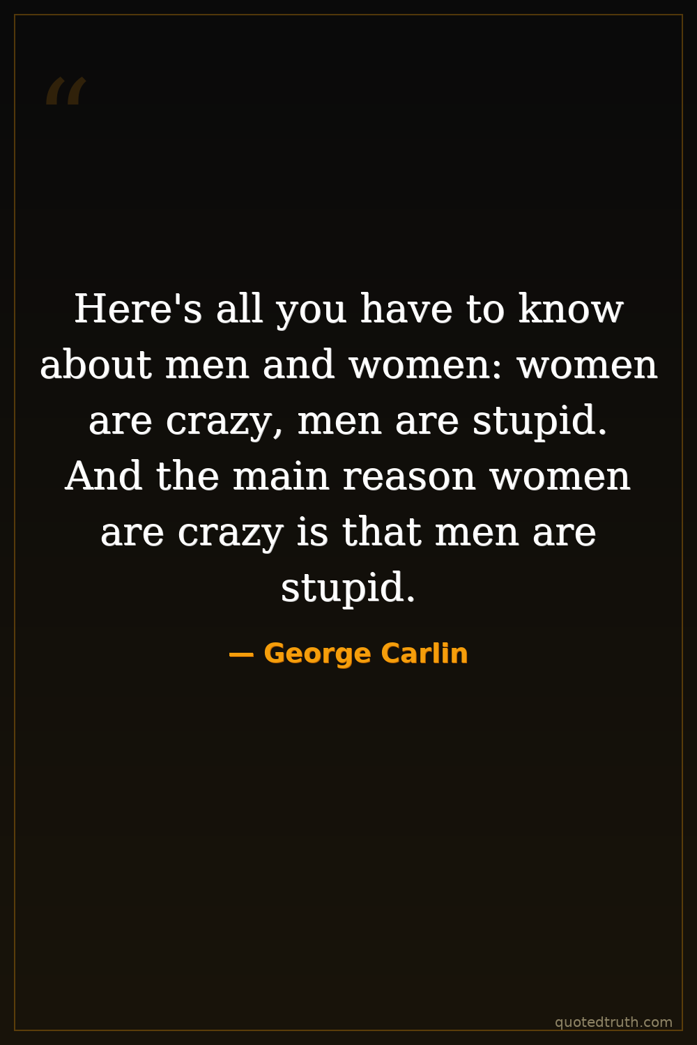 Here's all you have to know about men and women: women are crazy, men are stupid. And the main reason women are crazy is that men are stupid.