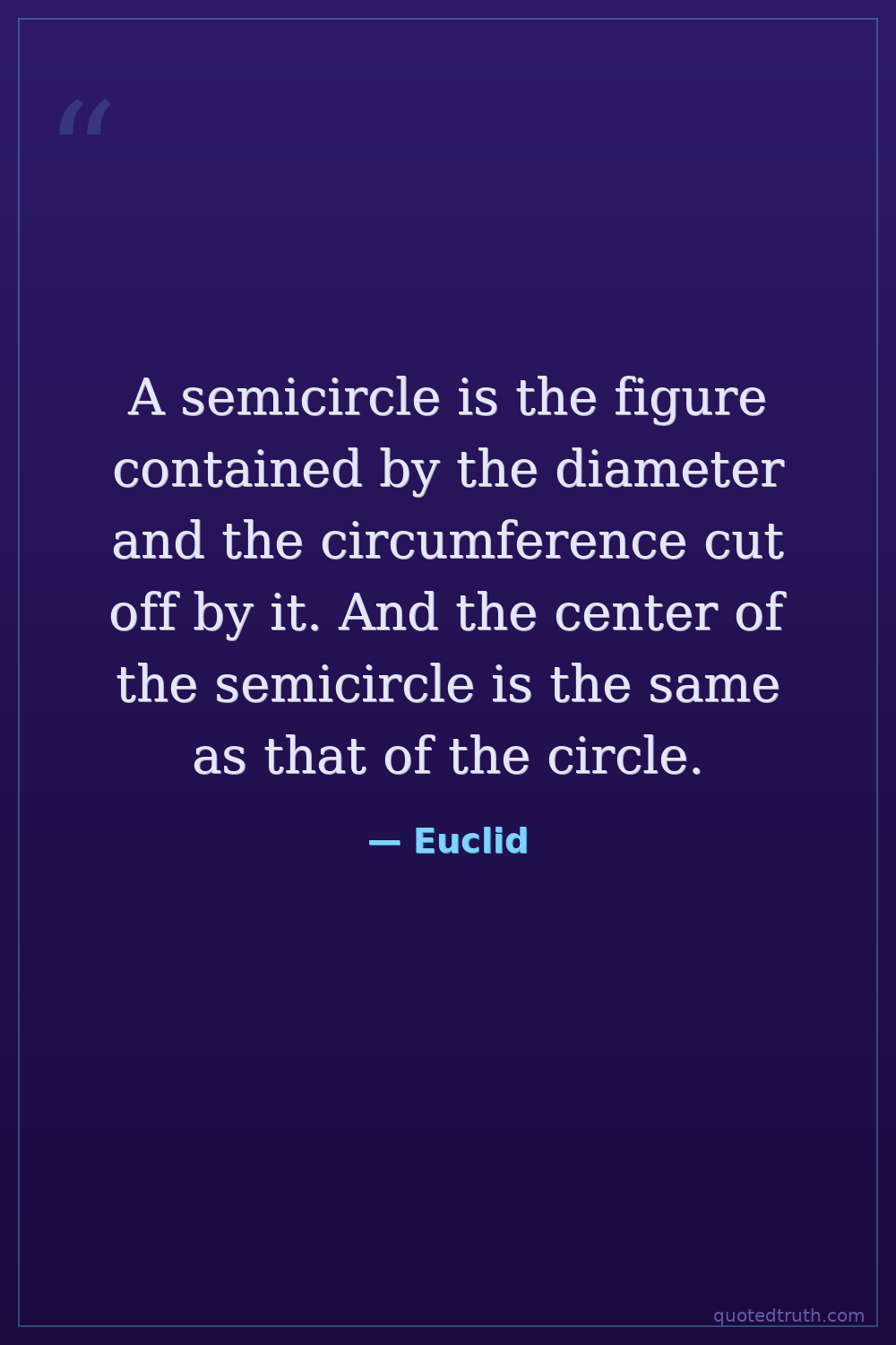 A semicircle is the figure contained by the diameter and the circumference cut off by it. And the center of the semicircle is the same as that of the circle.