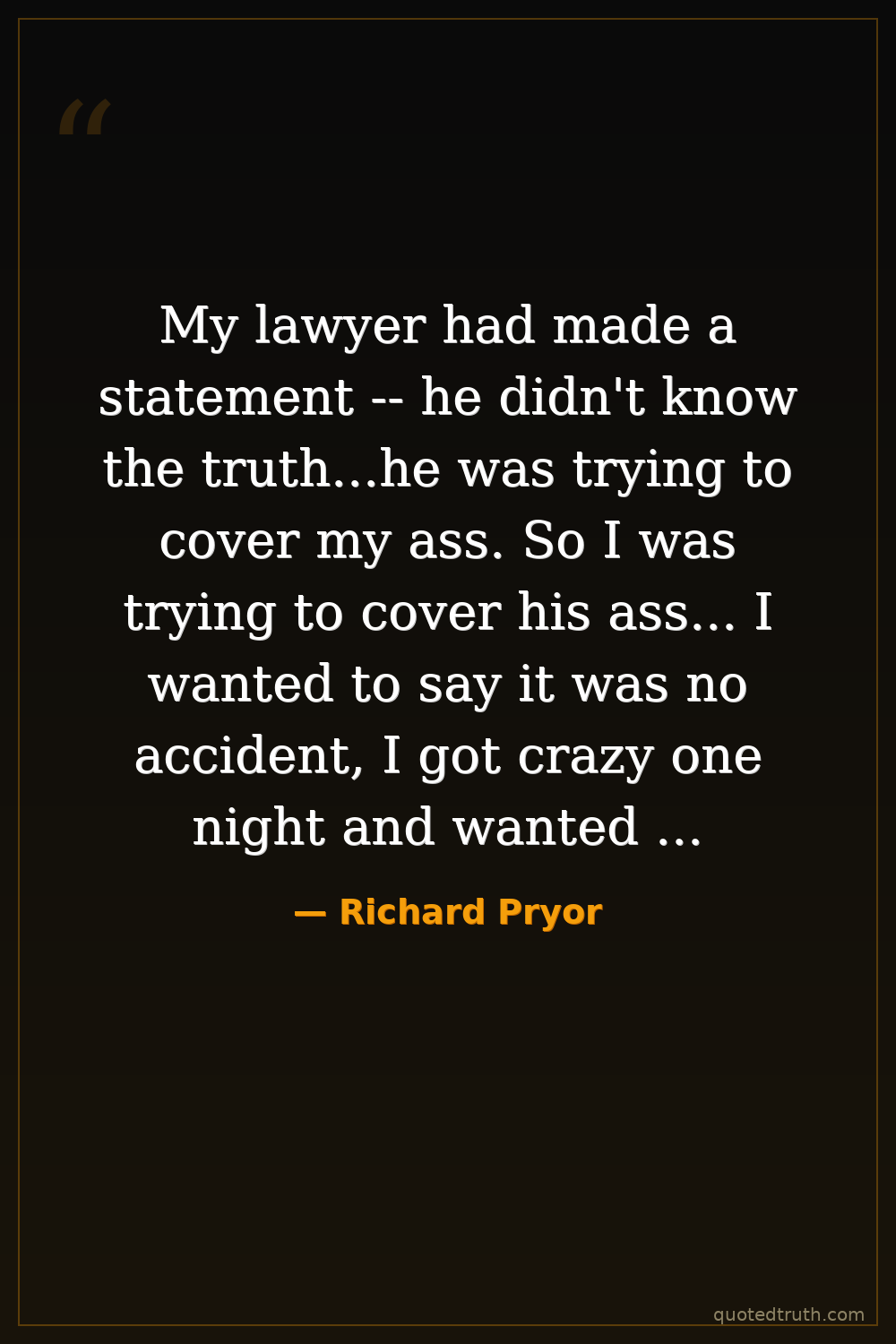 My lawyer had made a statement -- he didn't know the truth...he was trying to cover my ass. So I was trying to cover his ass... I wanted to say it was no accident, I got crazy one night and wanted to kill myself.... I remember pouring rum all over myself...