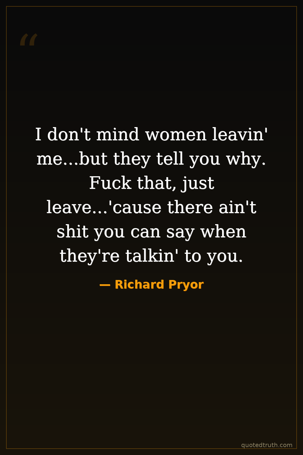 I don't mind women leavin' me...but they tell you why. Fuck that, just leave...'cause there ain't shit you can say when they're talkin' to you.