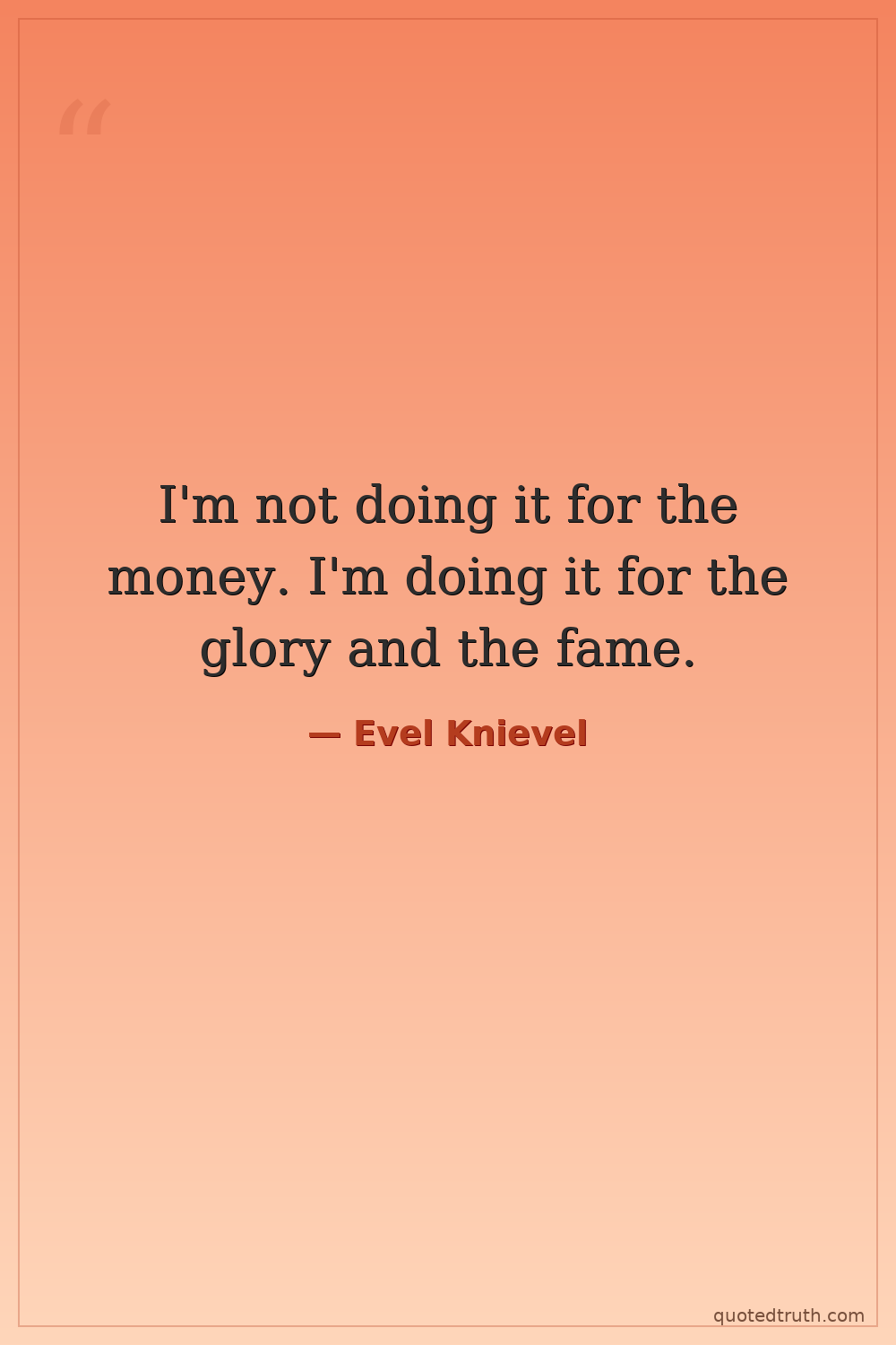 I'm not doing it for the money. I'm doing it for the glory and the fame.