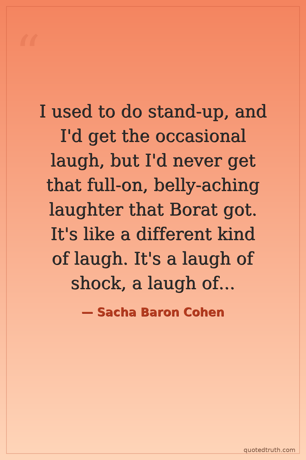 I used to do stand-up, and I'd get the occasional laugh, but I'd never get that full-on, belly-aching laughter that Borat got. It's like a different kind of laugh. It's a laugh of shock, a laugh of discomfort, a laugh of 'I can't believe he just said that.'