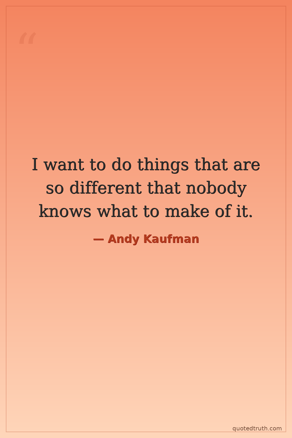 I want to do things that are so different that nobody knows what to make of it.