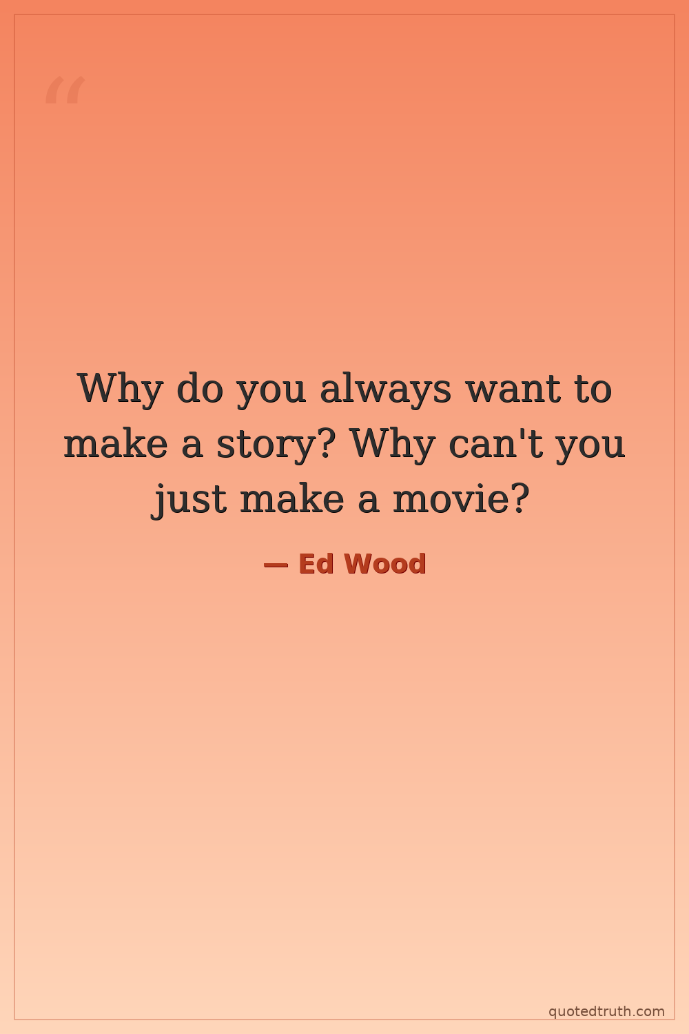 Why do you always want to make a story? Why can't you just make a movie?