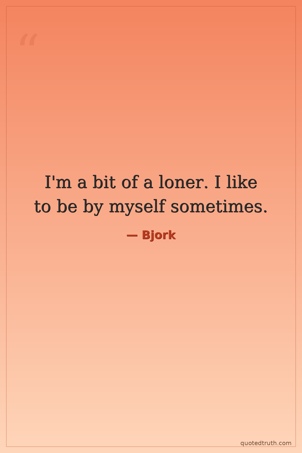 I'm a bit of a loner. I like to be by myself sometimes.