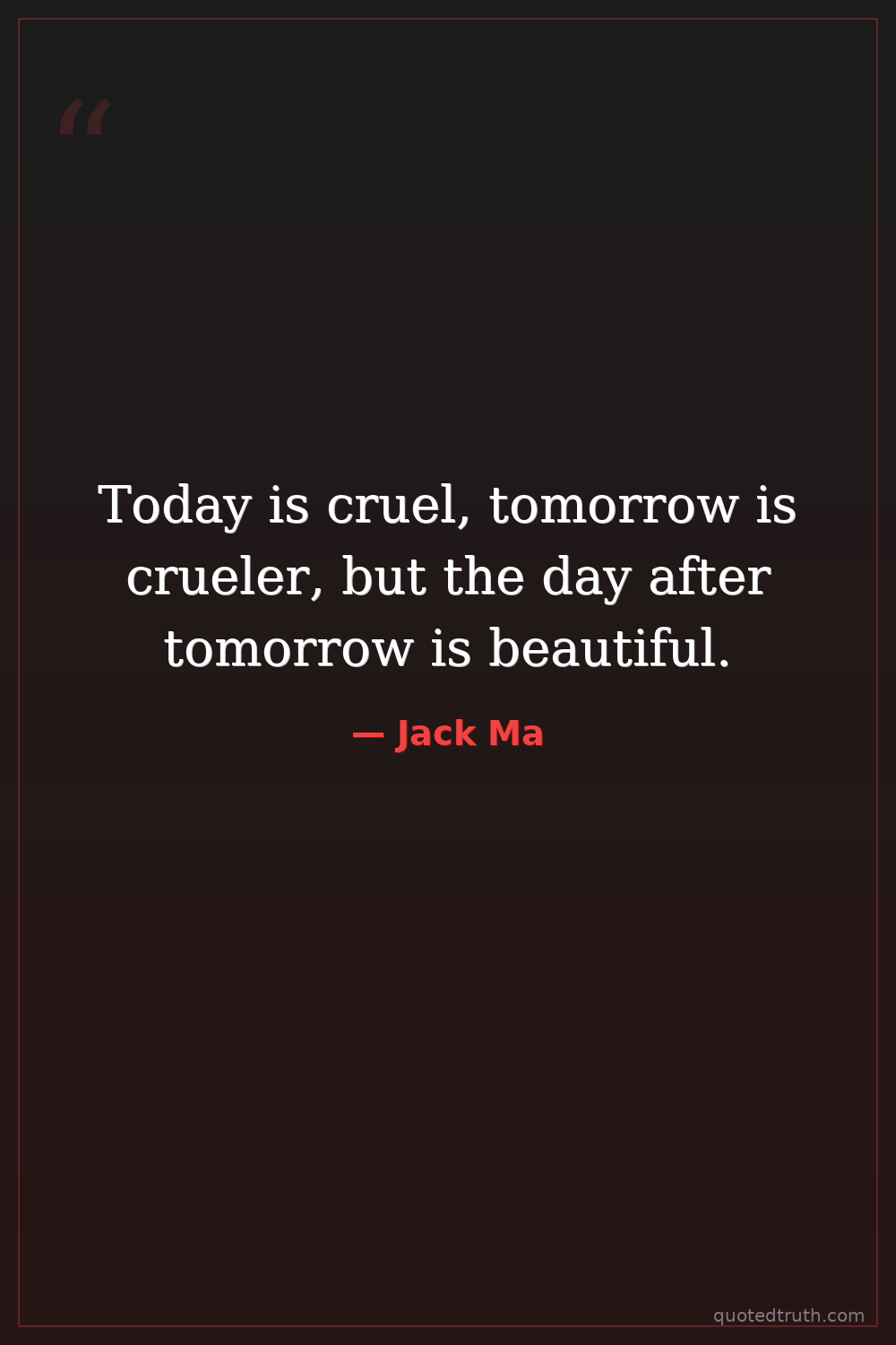 Today is cruel, tomorrow is crueler, but the day after tomorrow is beautiful.