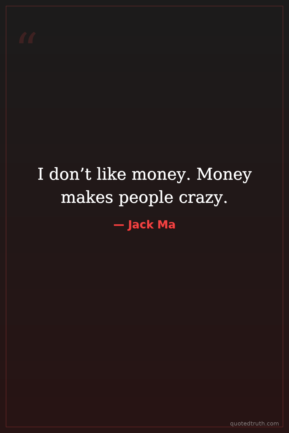 I don’t like money. Money makes people crazy.