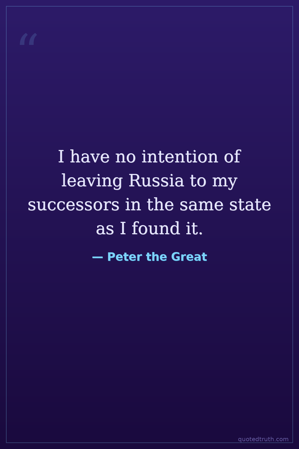 I have no intention of leaving Russia to my successors in the same state as I found it.