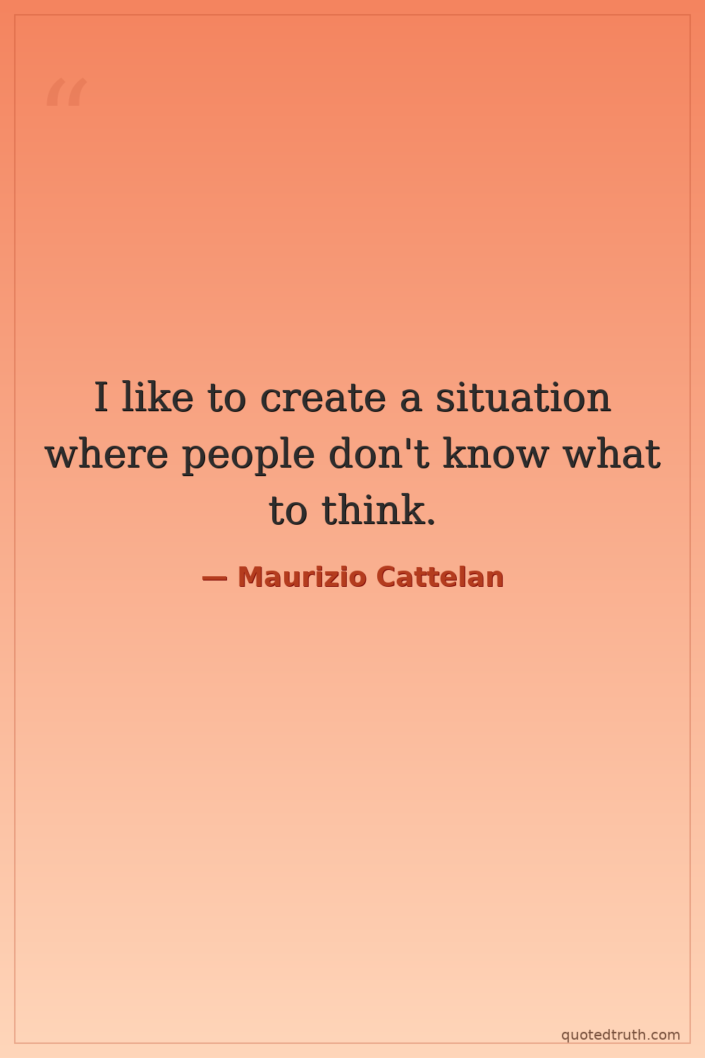 I like to create a situation where people don't know what to think.