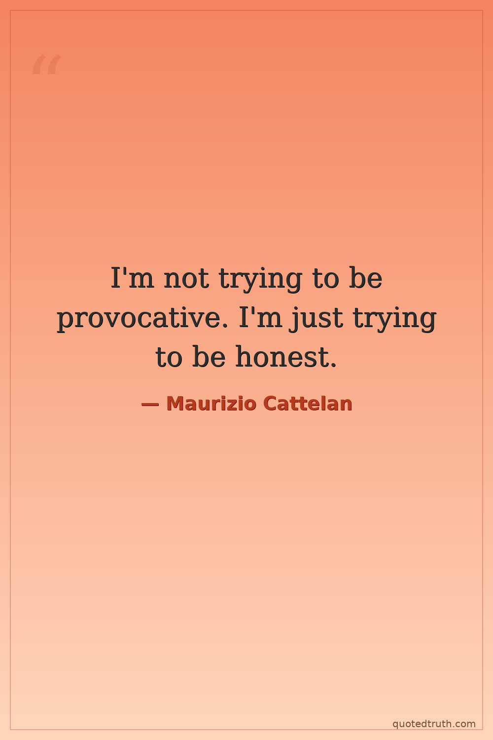 I'm not trying to be provocative. I'm just trying to be honest.