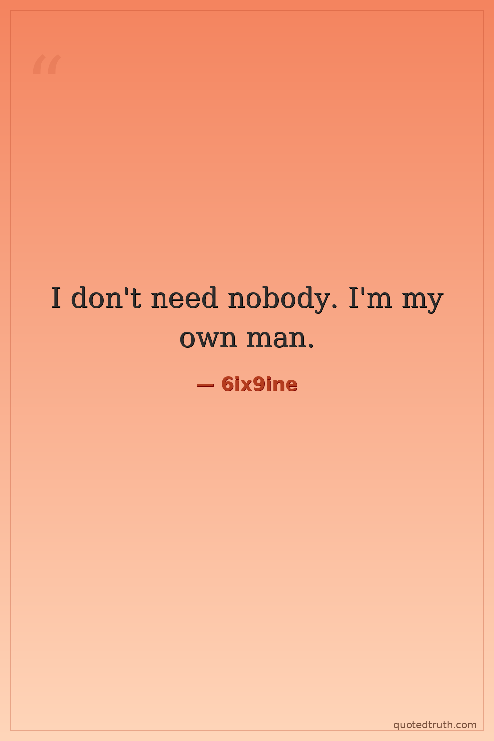 I don't need nobody. I'm my own man.
