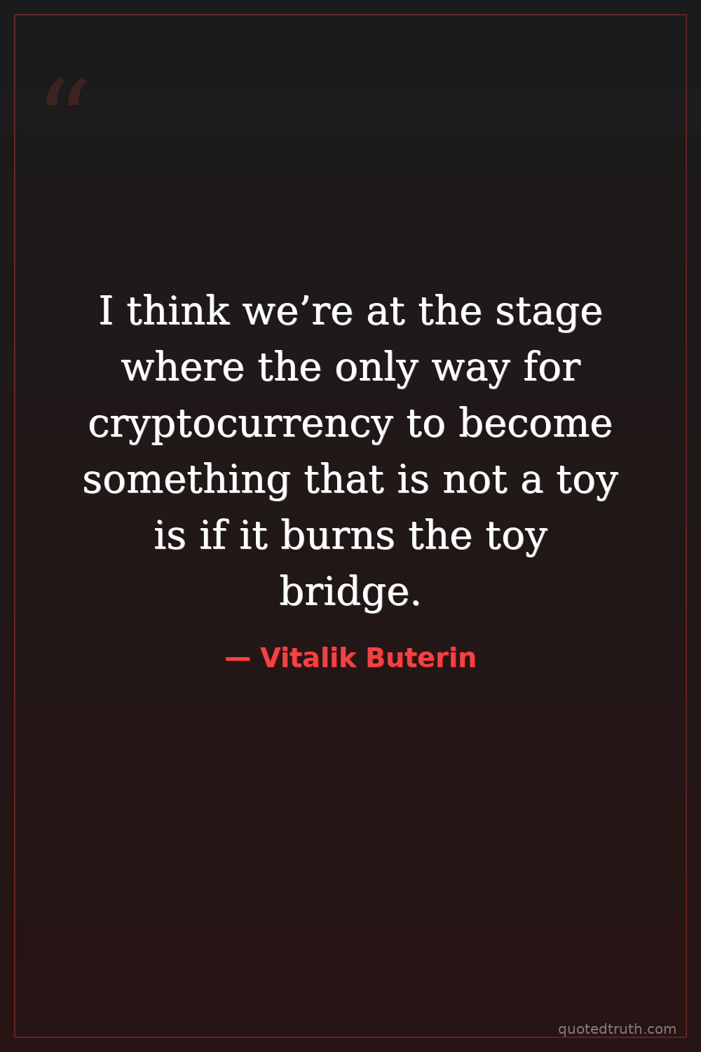 I think we’re at the stage where the only way for cryptocurrency to become something that is not a toy is if it burns the toy bridge.