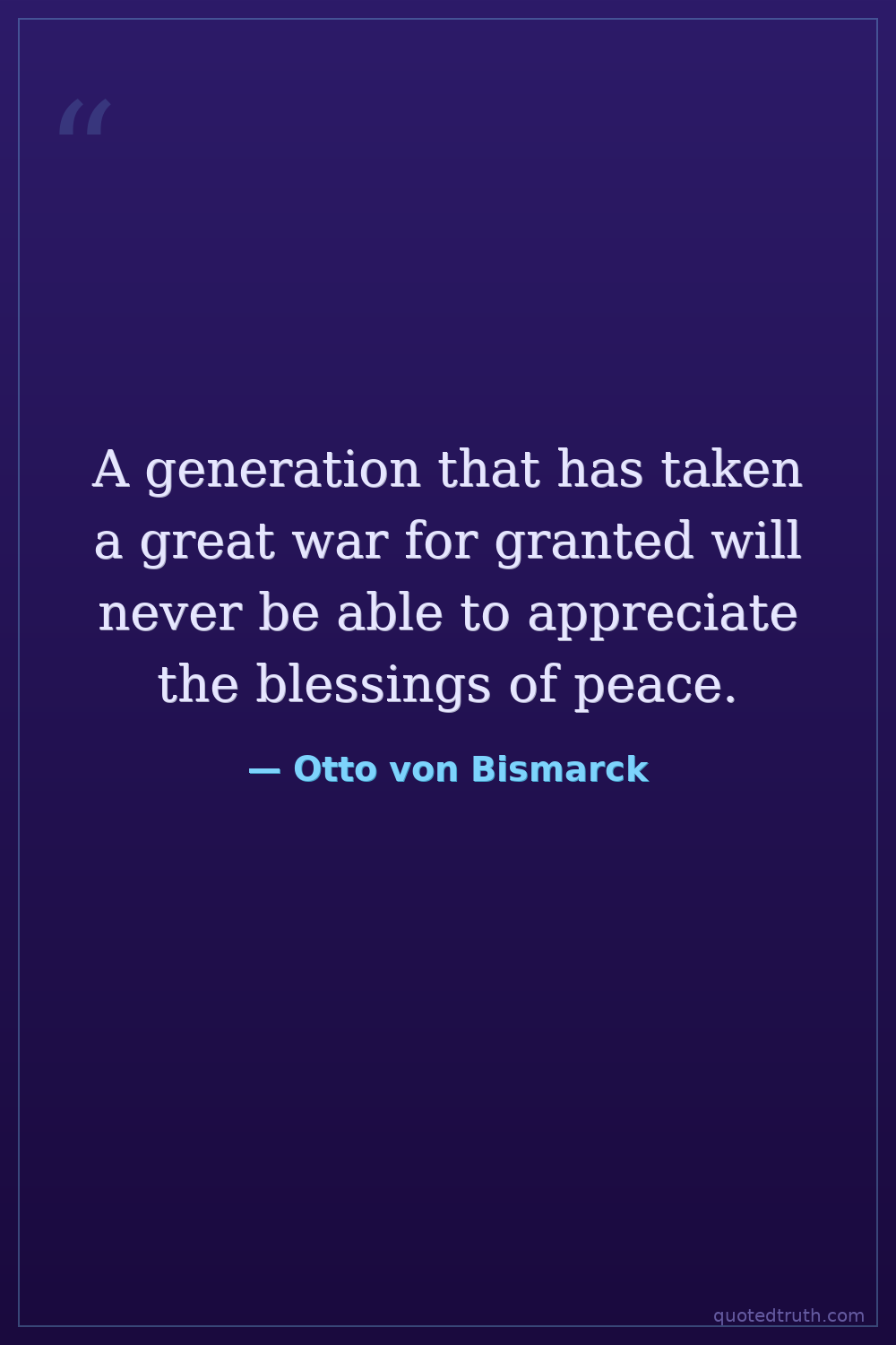A generation that has taken a great war for granted will never be able to appreciate the blessings of peace.