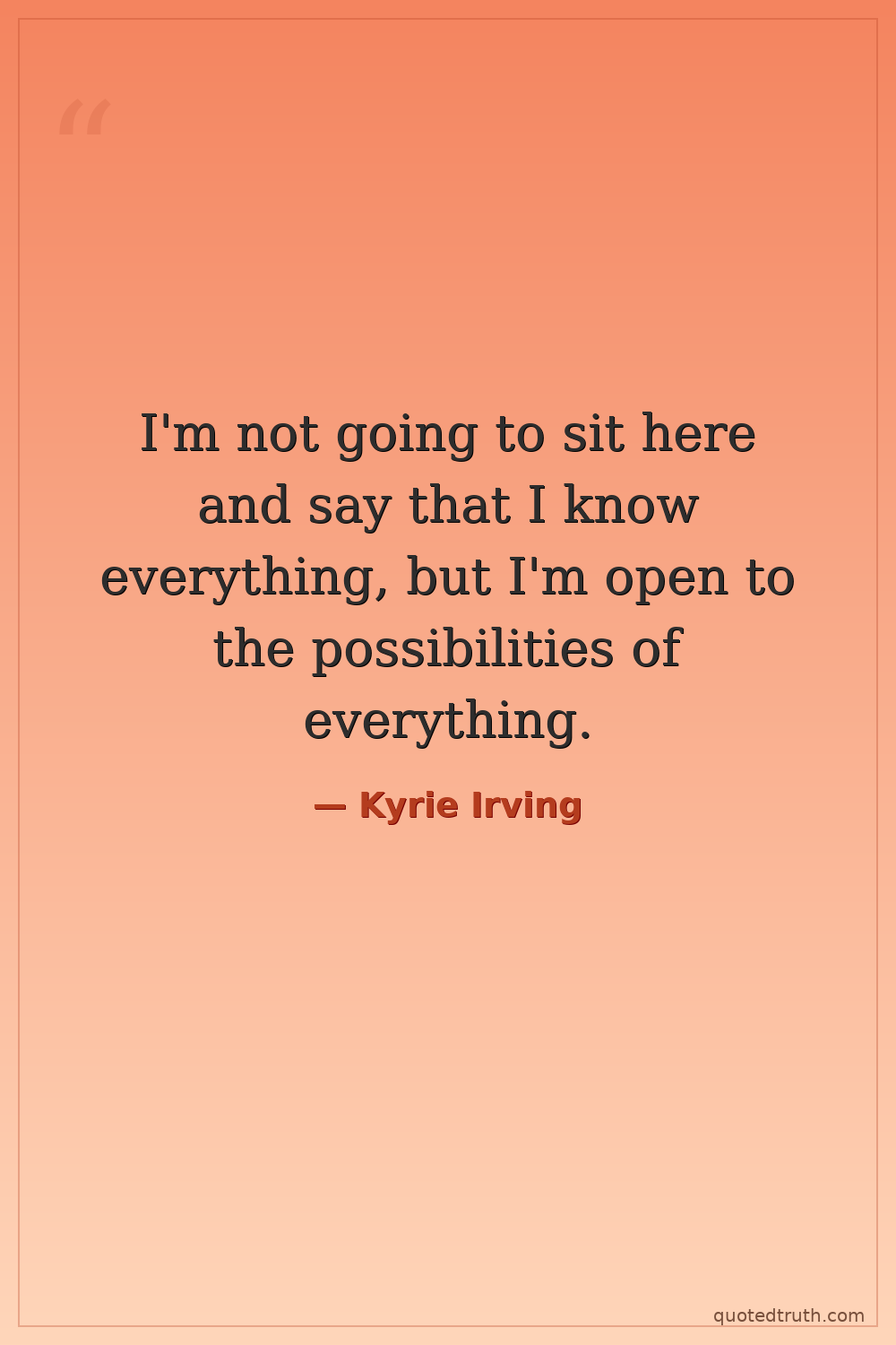 I'm not going to sit here and say that I know everything, but I'm open to the possibilities of everything.