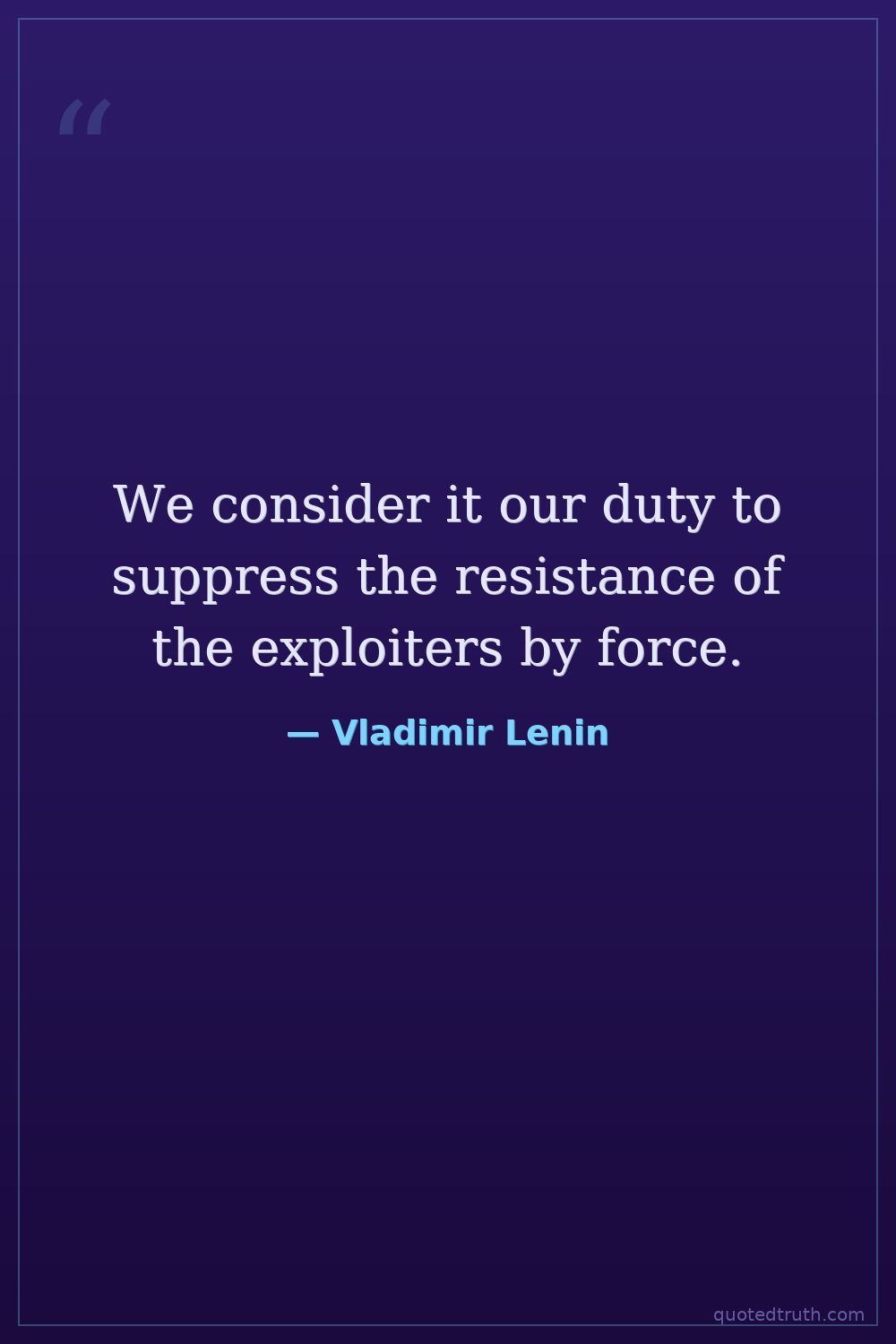 We consider it our duty to suppress the resistance of the exploiters by force.