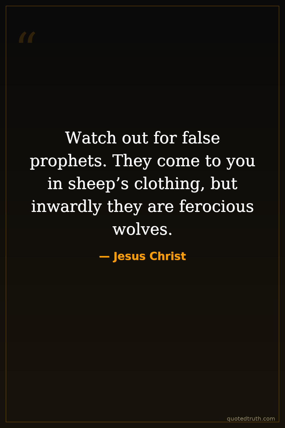 Watch out for false prophets. They come to you in sheep’s clothing, but inwardly they are ferocious wolves.