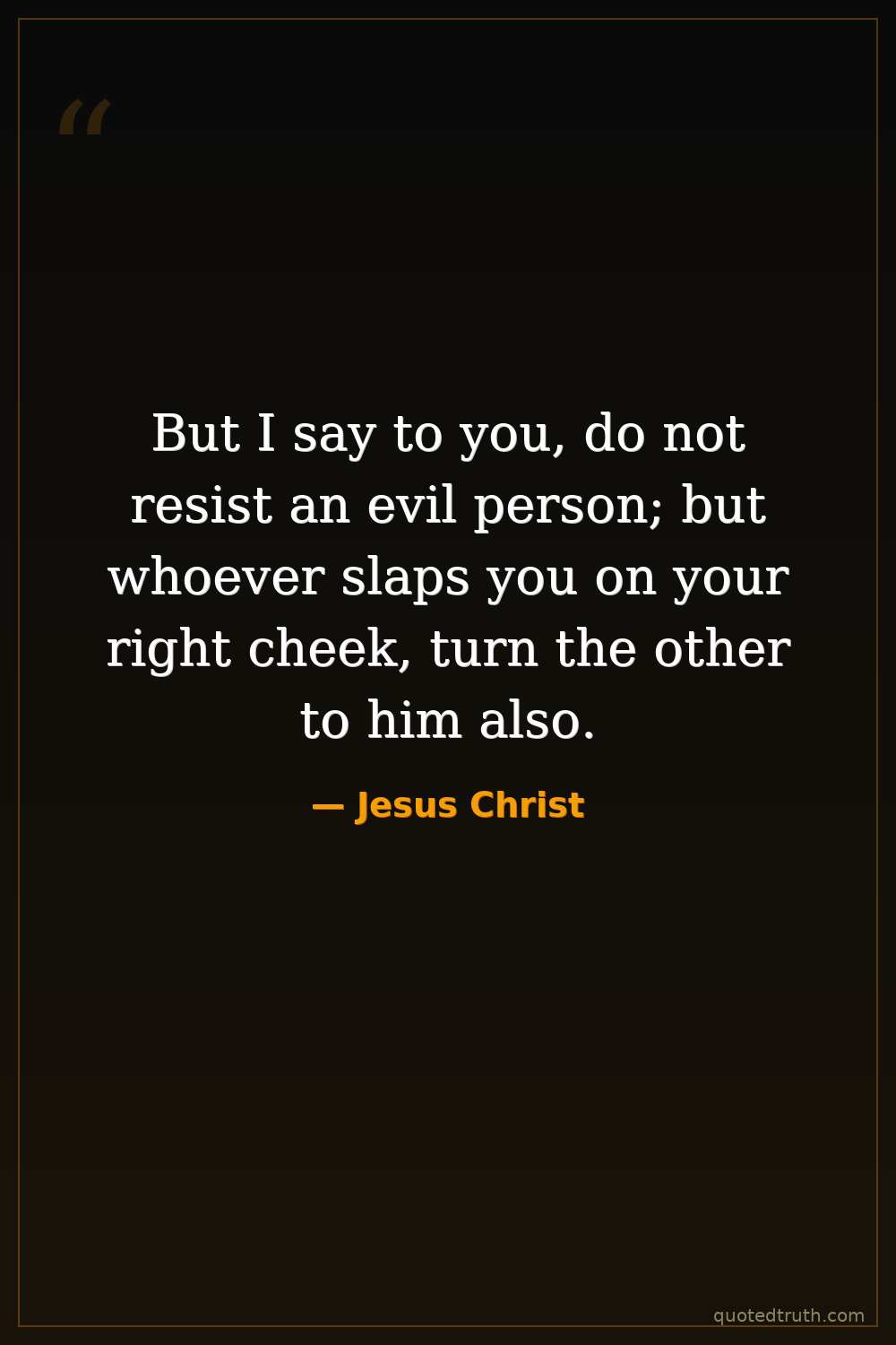 But I say to you, do not resist an evil person; but whoever slaps you on your right cheek, turn the other to him also.