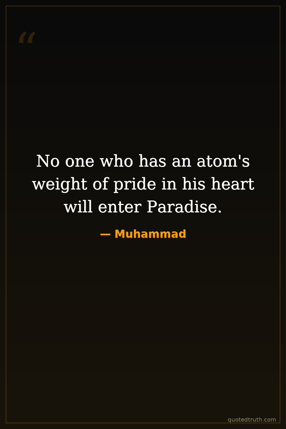 No one who has an atom's weight of pride in his heart will enter Paradise.