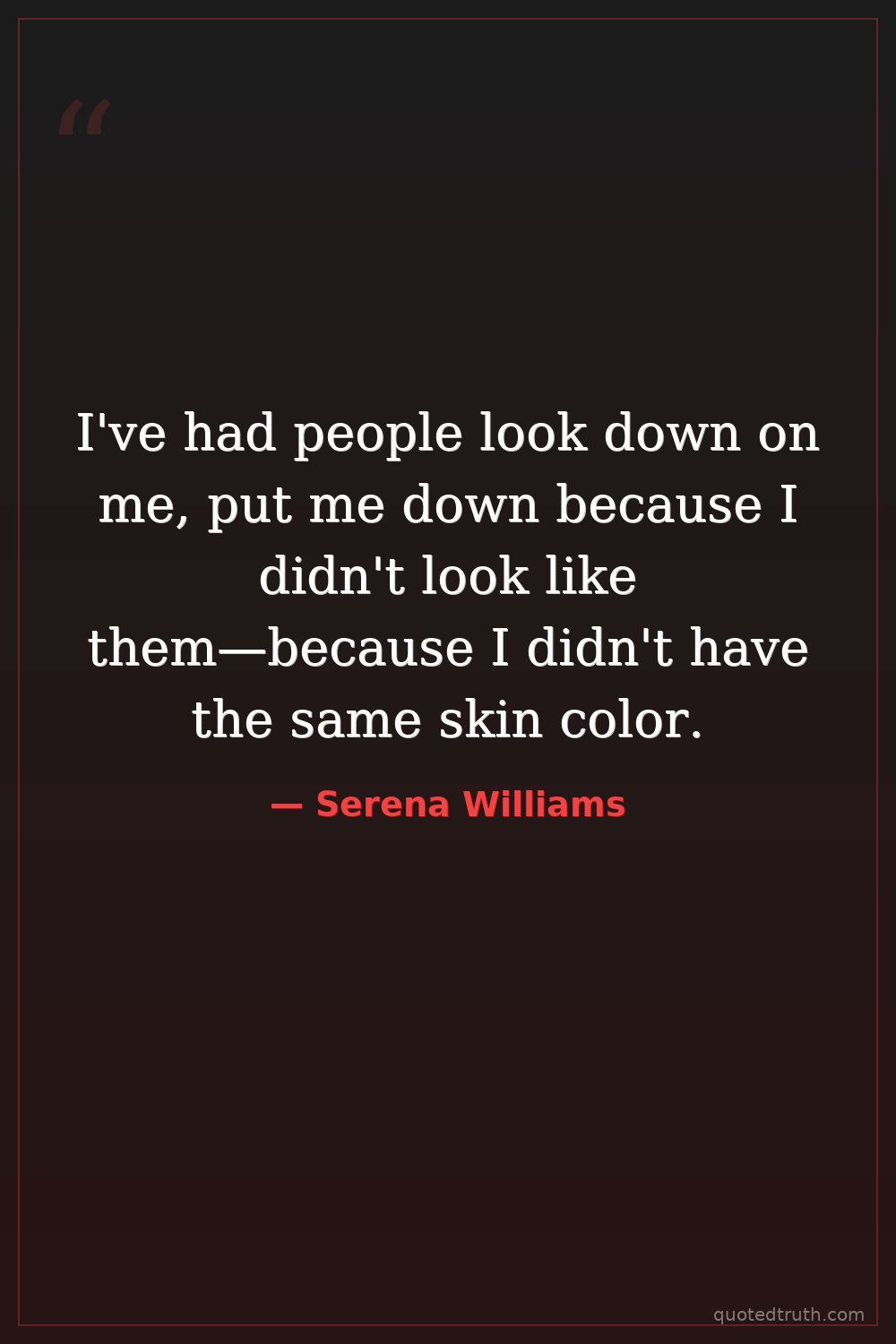I've had people look down on me, put me down because I didn't look like them—because I didn't have the same skin color.