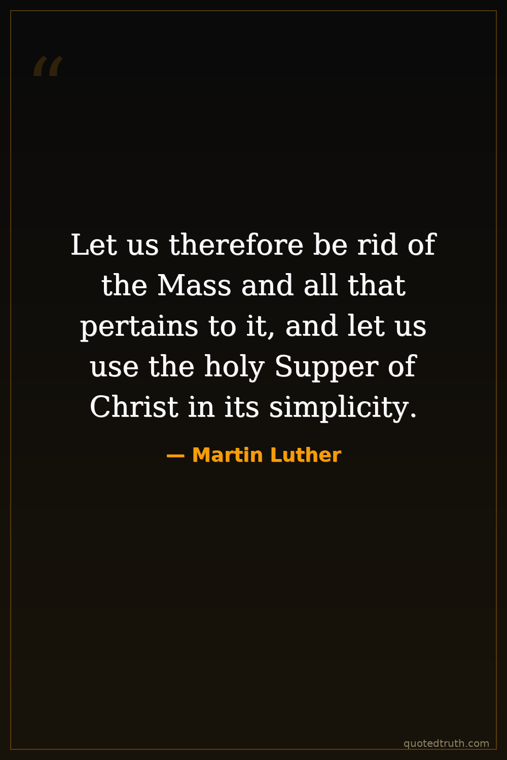 Let us therefore be rid of the Mass and all that pertains to it, and let us use the holy Supper of Christ in its simplicity.