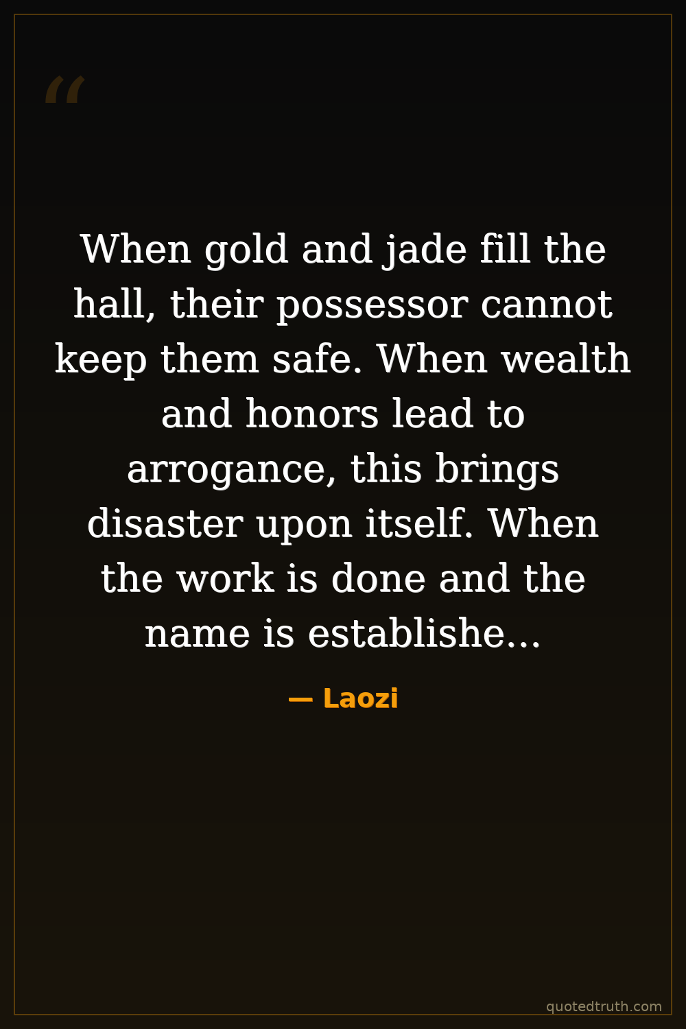 When gold and jade fill the hall, their possessor cannot keep them safe. When wealth and honors lead to arrogance, this brings disaster upon itself. When the work is done and the name is established, then one should retire. This is the Way of Heaven.