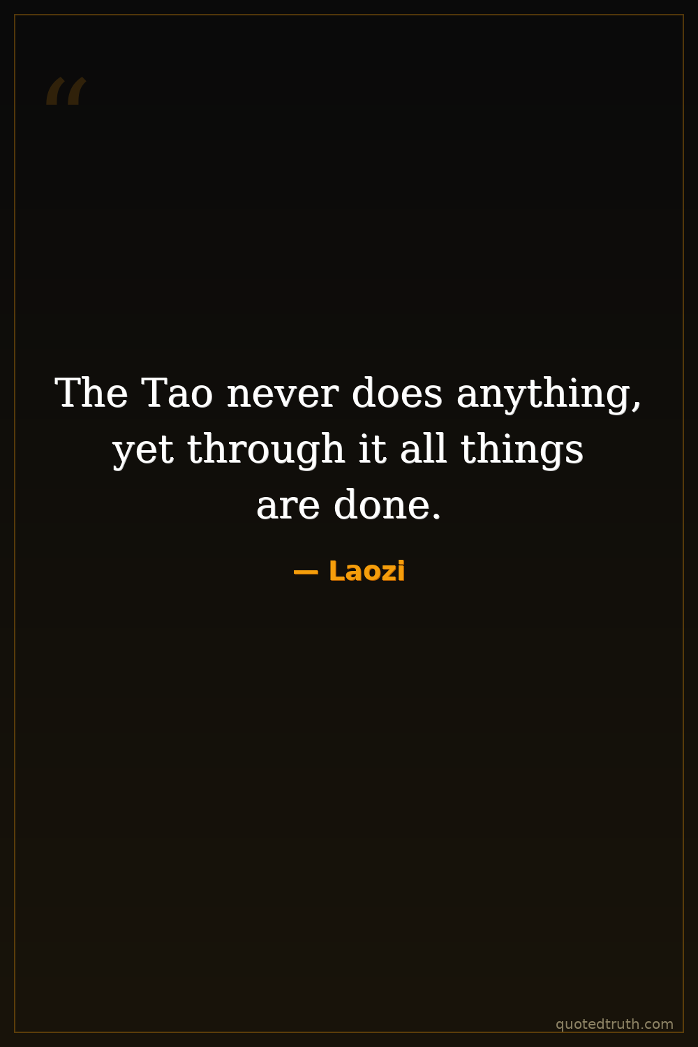 The Tao never does anything, yet through it all things are done.
