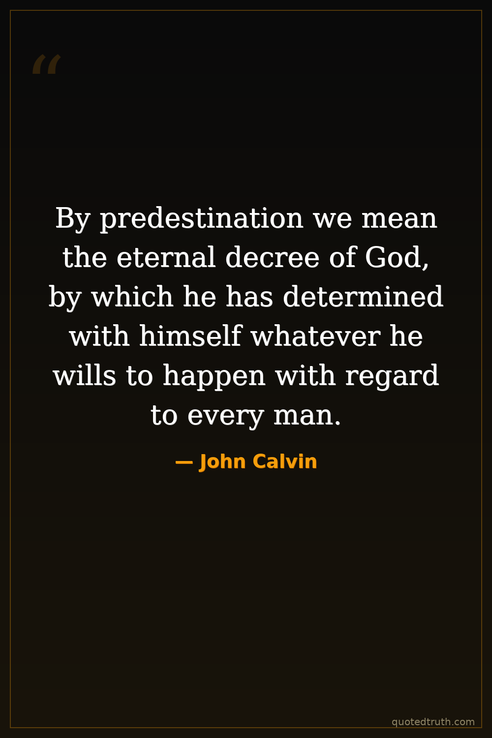 By predestination we mean the eternal decree of God, by which he has determined with himself whatever he wills to happen with regard to every man.