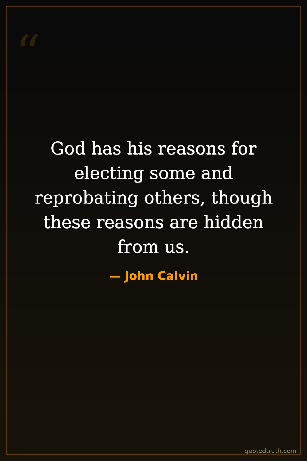 Controversial"The reason why some are saved and others perish is not to be sought in their own will, but in the secret counsel of God."