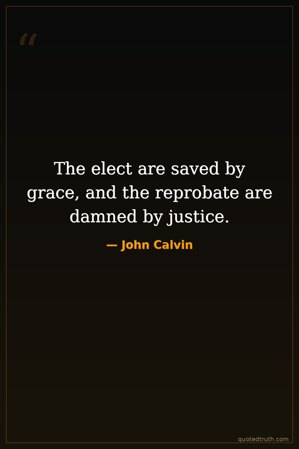 Controversial"Ignorance of predestination is a great evil, because it deprives us of the knowledge of God's glory."