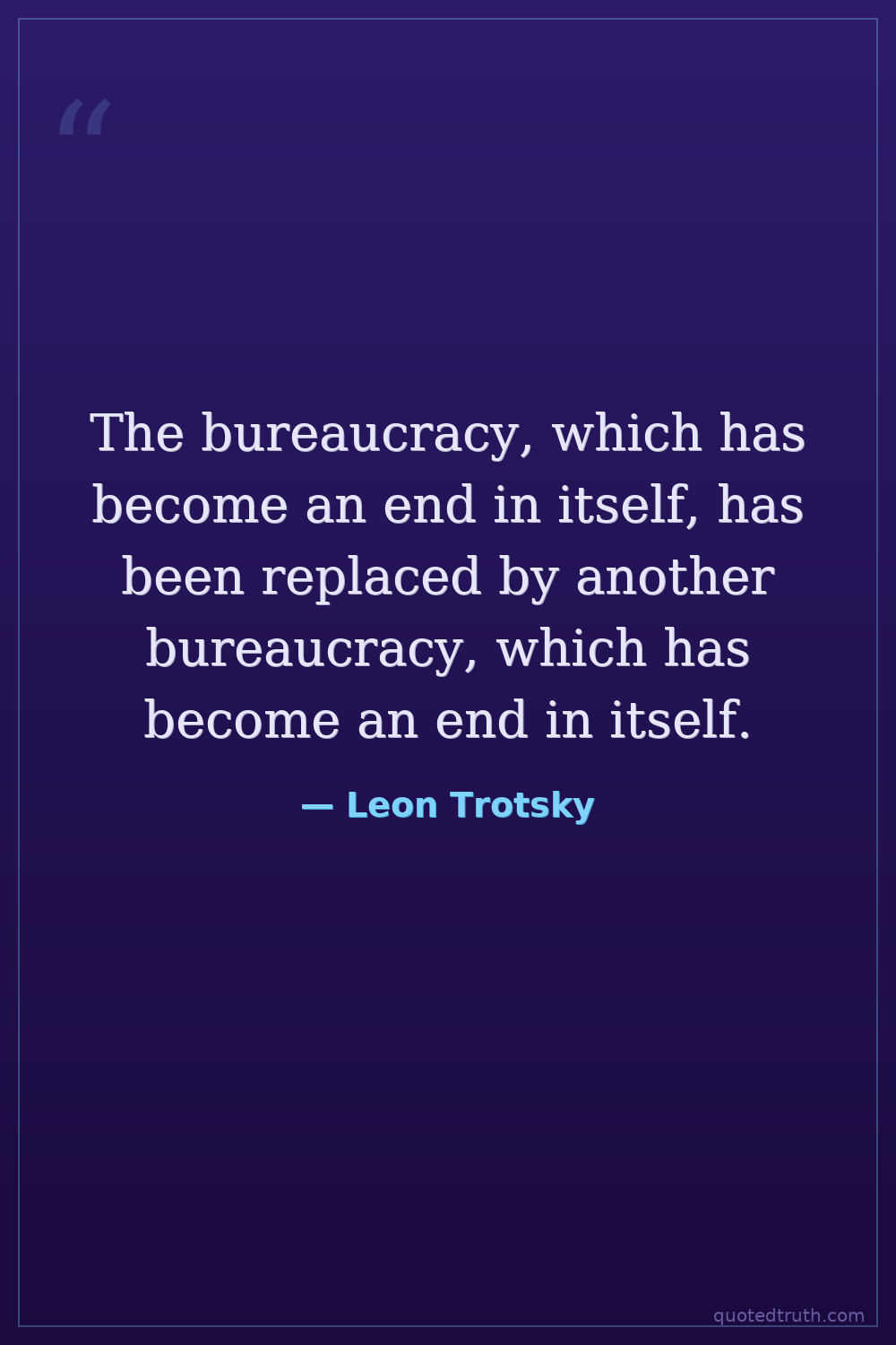 The bureaucracy, which has become an end in itself, has been replaced by another bureaucracy, which has become an end in itself.