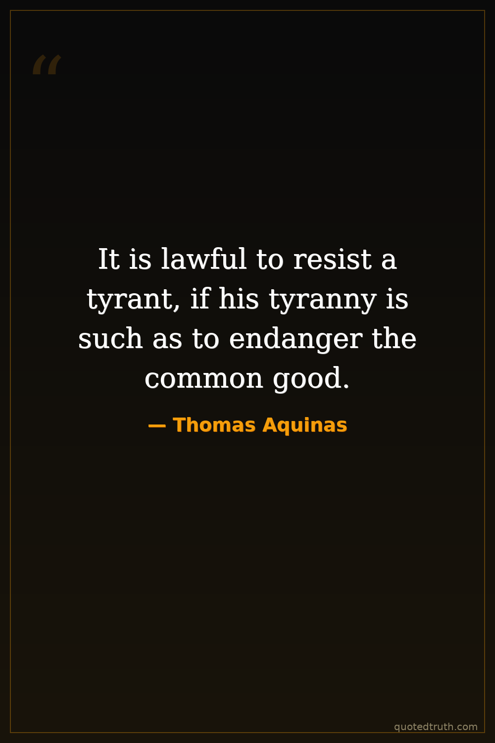 It is lawful to resist a tyrant, if his tyranny is such as to endanger the common good.