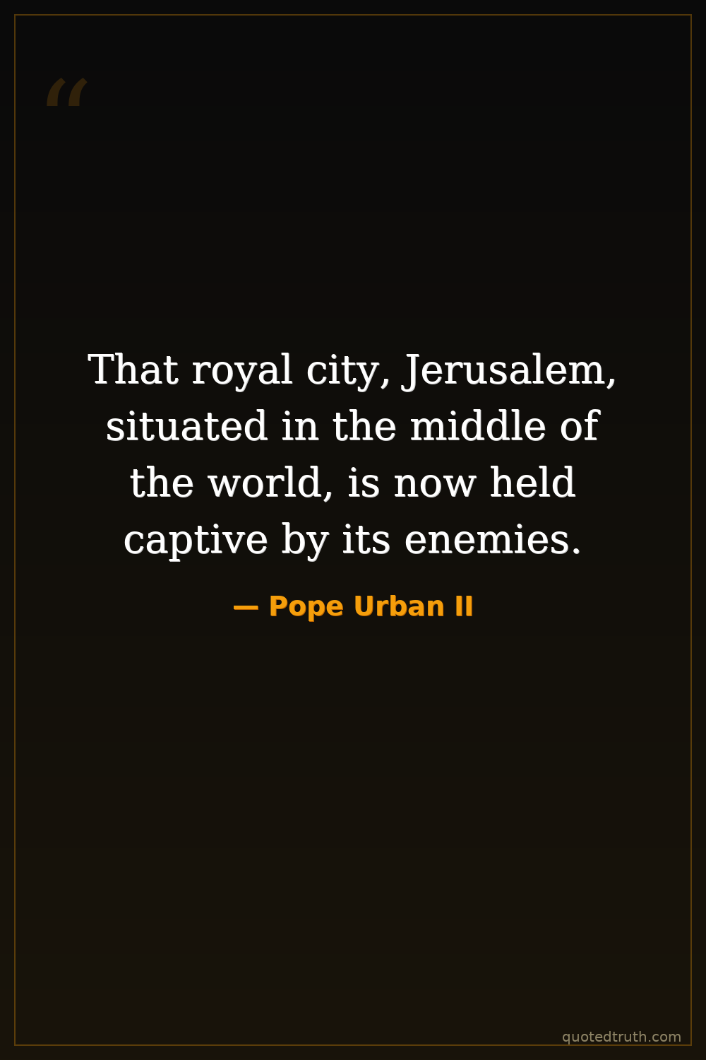 Shocking"We exhort and command you, brethren, to strive with all your might to drive out the Turks from the confines of the Christians, and to aid the Christians, who are now subjected to their yoke."