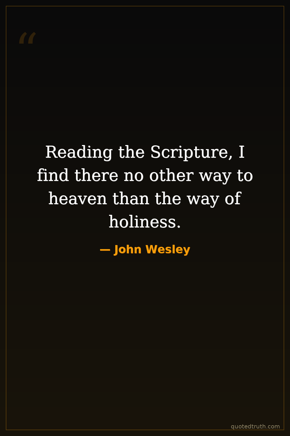 Reading the Scripture, I find there no other way to heaven than the way of holiness.