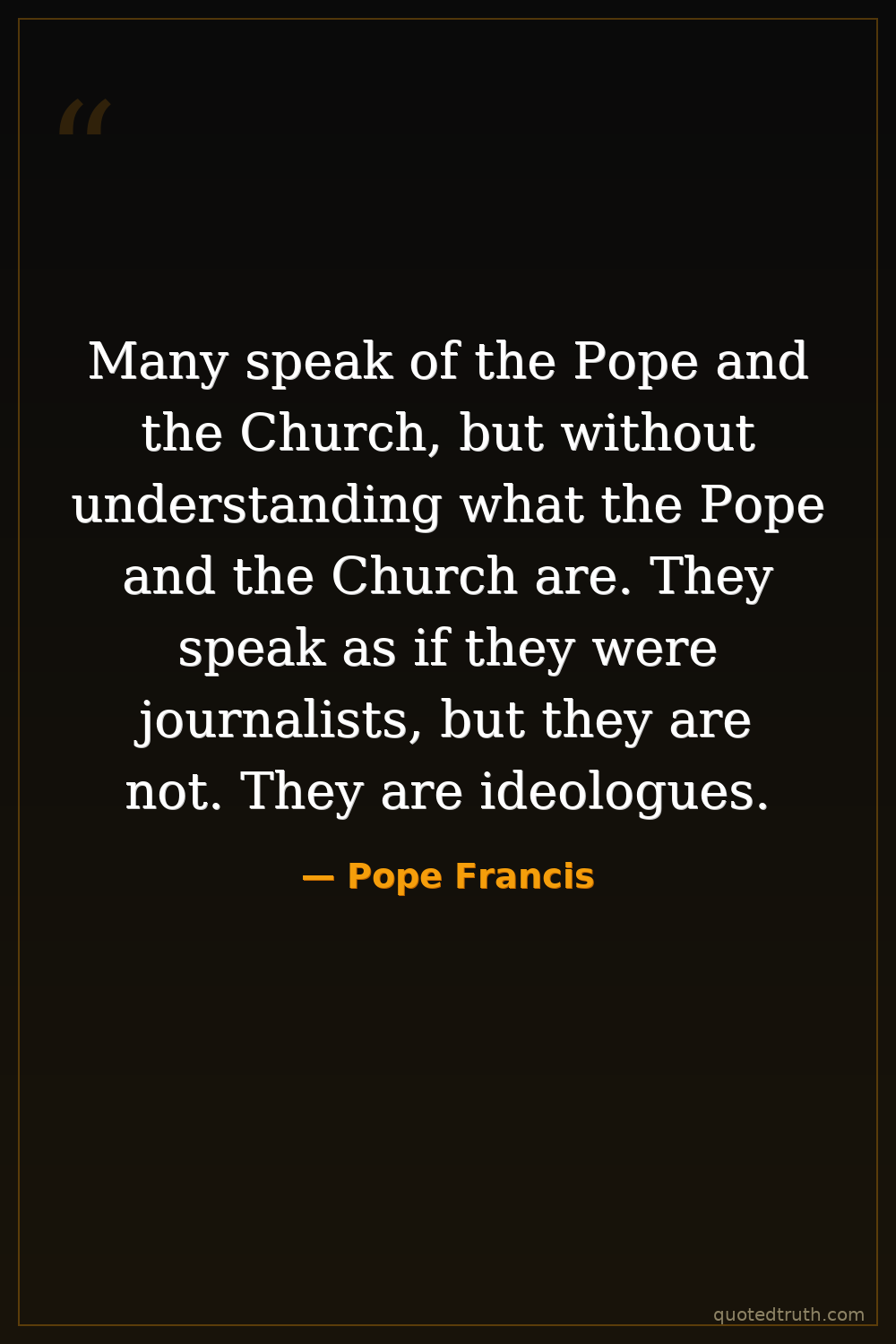 Many speak of the Pope and the Church, but without understanding what the Pope and the Church are. They speak as if they were journalists, but they are not. They are ideologues.