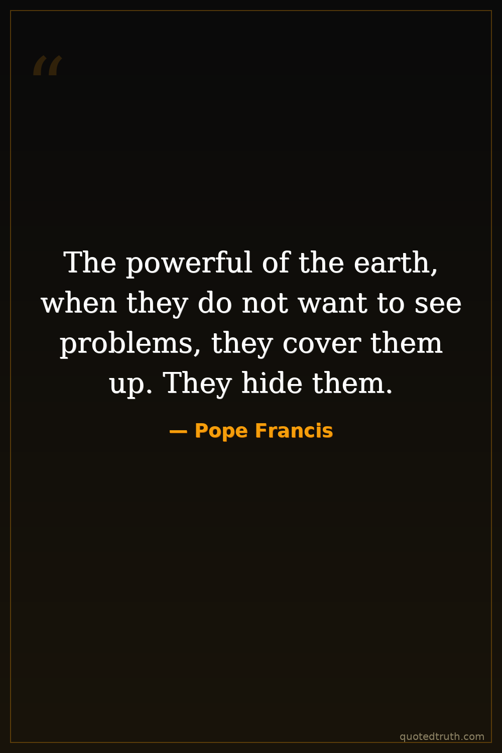 The powerful of the earth, when they do not want to see problems, they cover them up. They hide them.