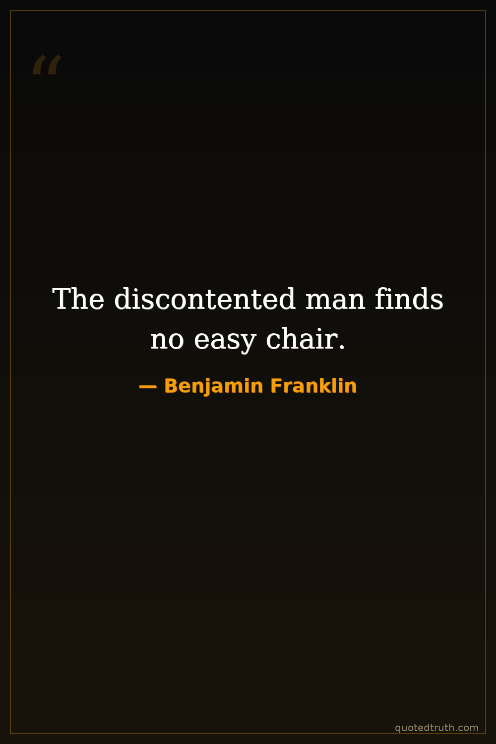 The discontented man finds no easy chair.