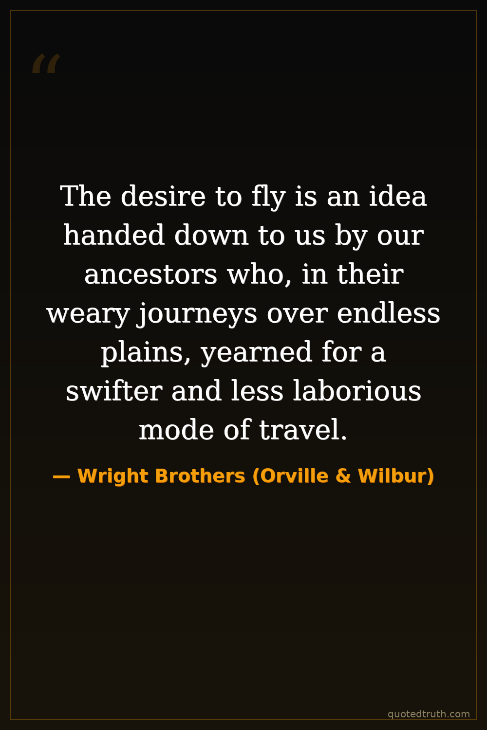 The desire to fly is an idea handed down to us by our ancestors who, in their weary journeys over endless plains, yearned for a swifter and less laborious mode of travel.