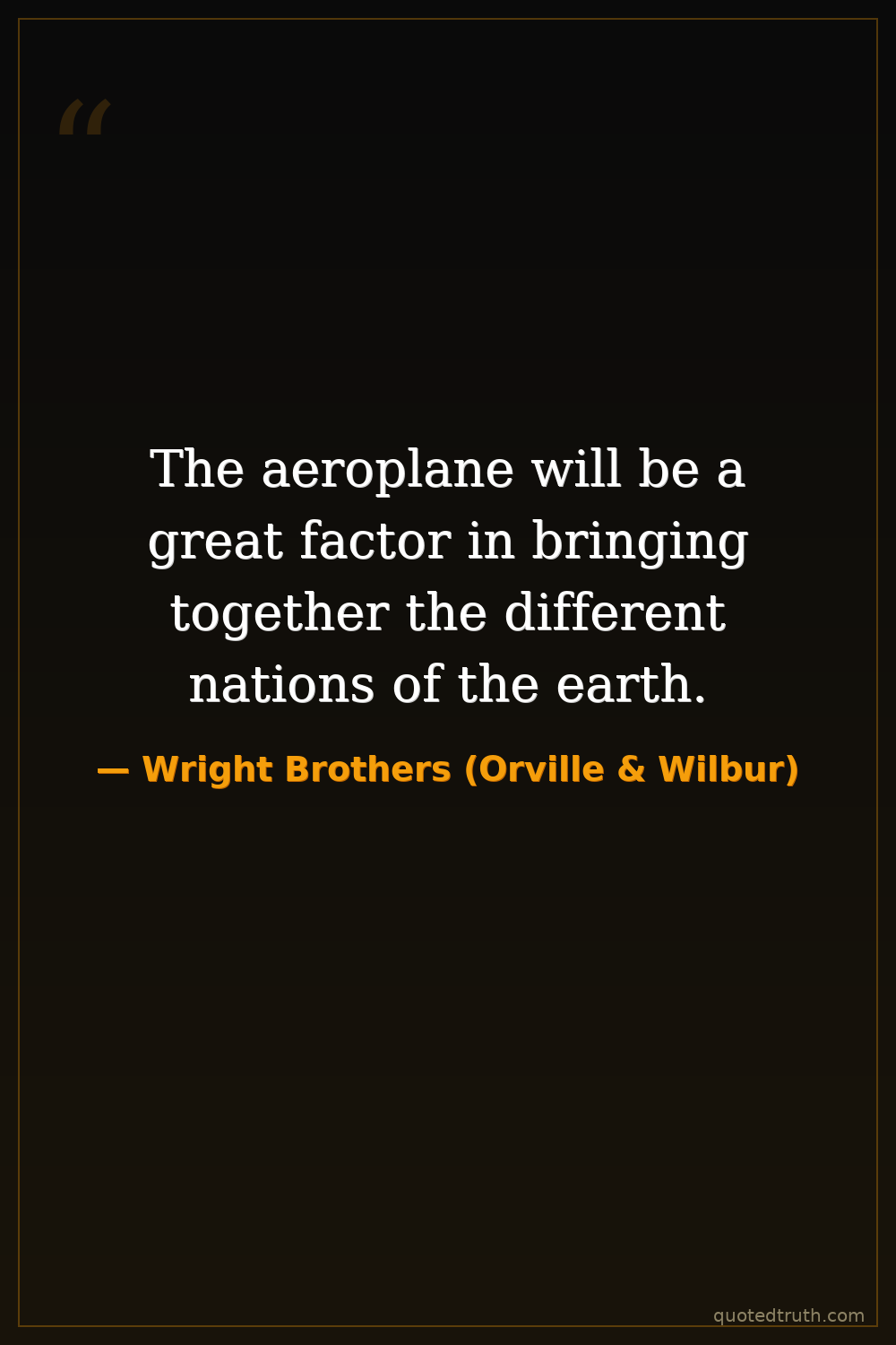 The aeroplane will be a great factor in bringing together the different nations of the earth.