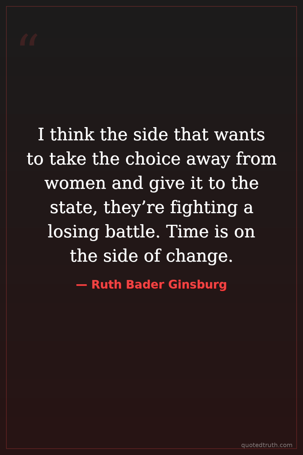 I think the side that wants to take the choice away from women and give it to the state, they’re fighting a losing battle. Time is on the side of change.