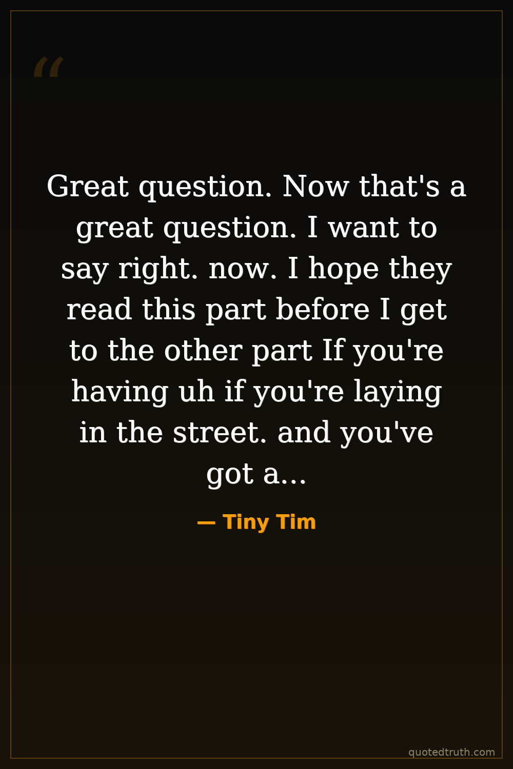 Great question. Now that's a great question. I want to say right. now. I hope they read this part before I get to the other part If you're having uh if you're laying in the street. and you've got a priest. and a minister and a rabbi coming down. and they all pass you by and a gay person helps you that man is the one who's done the good deed And. so what I say. now is not meant in criticism And I would say this to my daughter or son. if I had to However. I have worked with them They've been fine people to me I've worked in clubs with them Unfortunately. however and I am bitter against anyone who hits them or kills them And the law that doesn't take quicker action to those people who kill them or hit them because the commandment of thou shalt not kill as well But unfortunately.