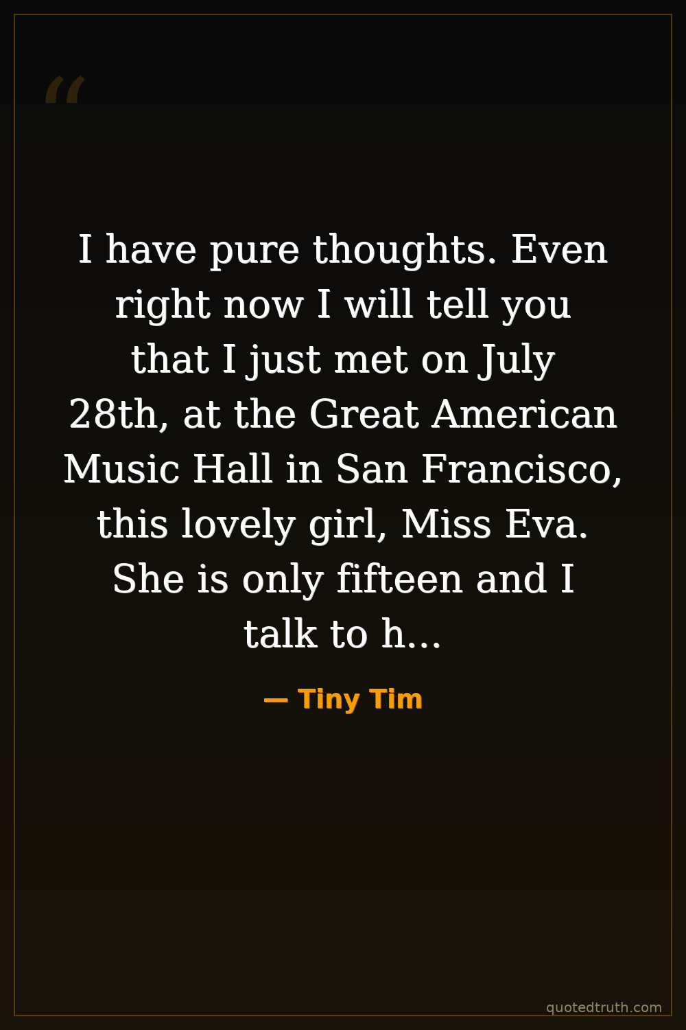 I have pure thoughts. Even right now I will tell you that I just met on July 28th, at the Great American Music Hall in San Francisco, this lovely girl, Miss Eva. She is only fifteen and I talk to her every night. Her father knows she calls me. She wanted to come out to see me when I was in Sacramento. About two days later I told her I would love to have her come down, but my manager told me I could not, being that I'm still married.