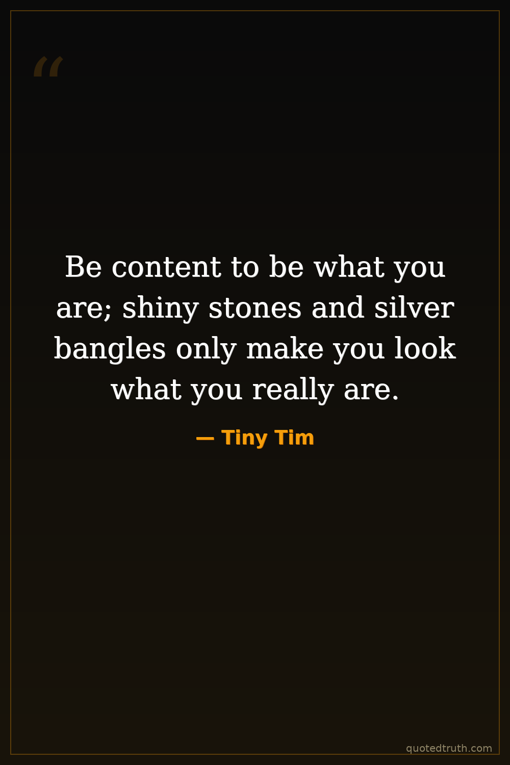 Be content to be what you are; shiny stones and silver bangles only make you look what you really are.