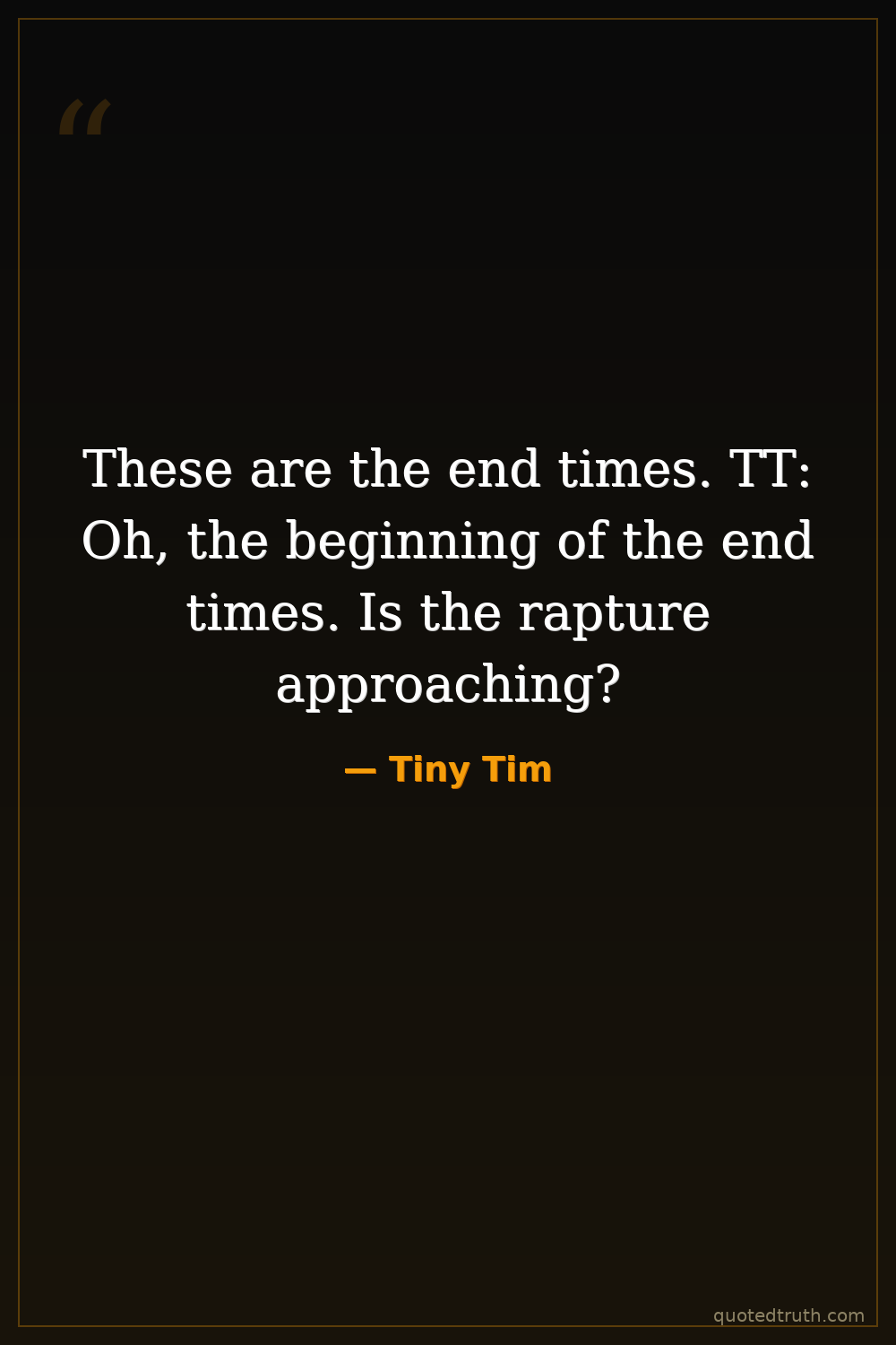 These are the end times. TT: Oh, the beginning of the end times. Is the rapture approaching?