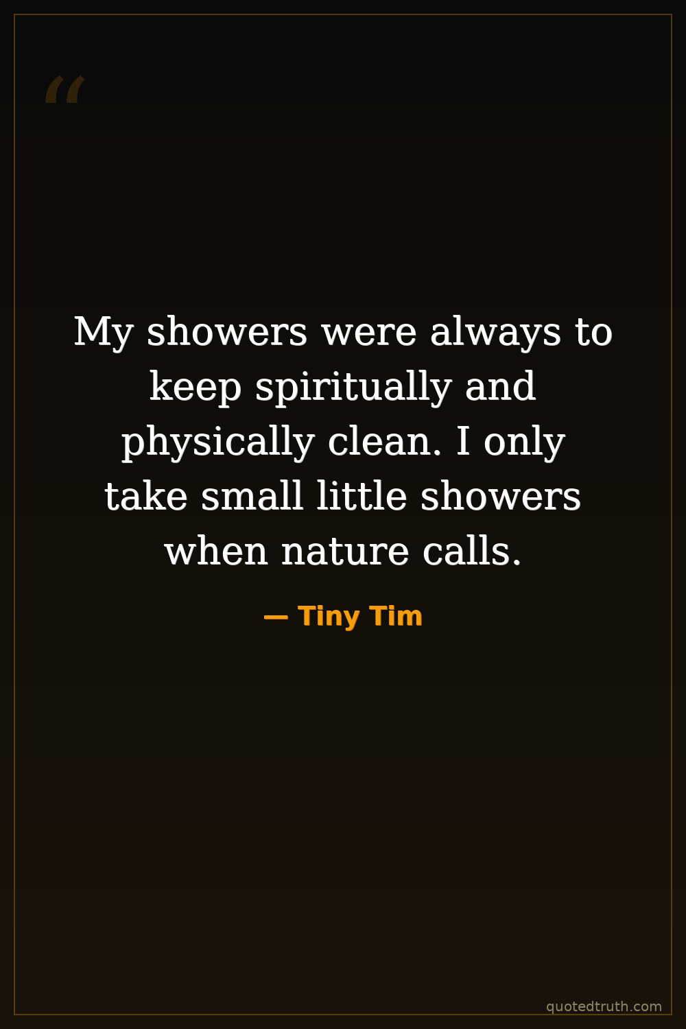 My showers were always to keep spiritually and physically clean. I only take small little showers when nature calls.