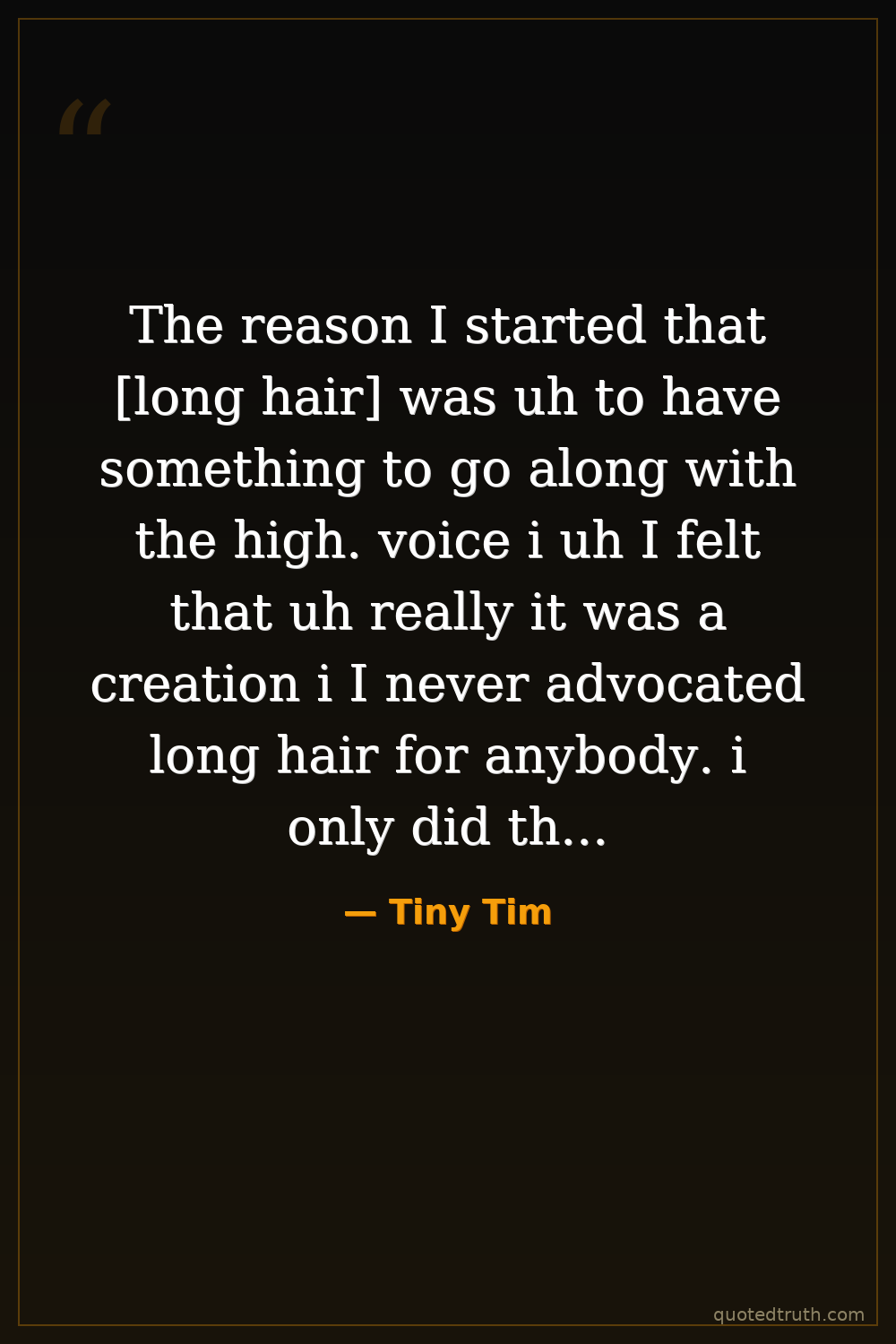 The reason I started that [long hair] was uh to have something to go along with the high. voice i uh I felt that uh really it was a creation i I never advocated long hair for anybody. i only did this believe it or not to to go along with the style.