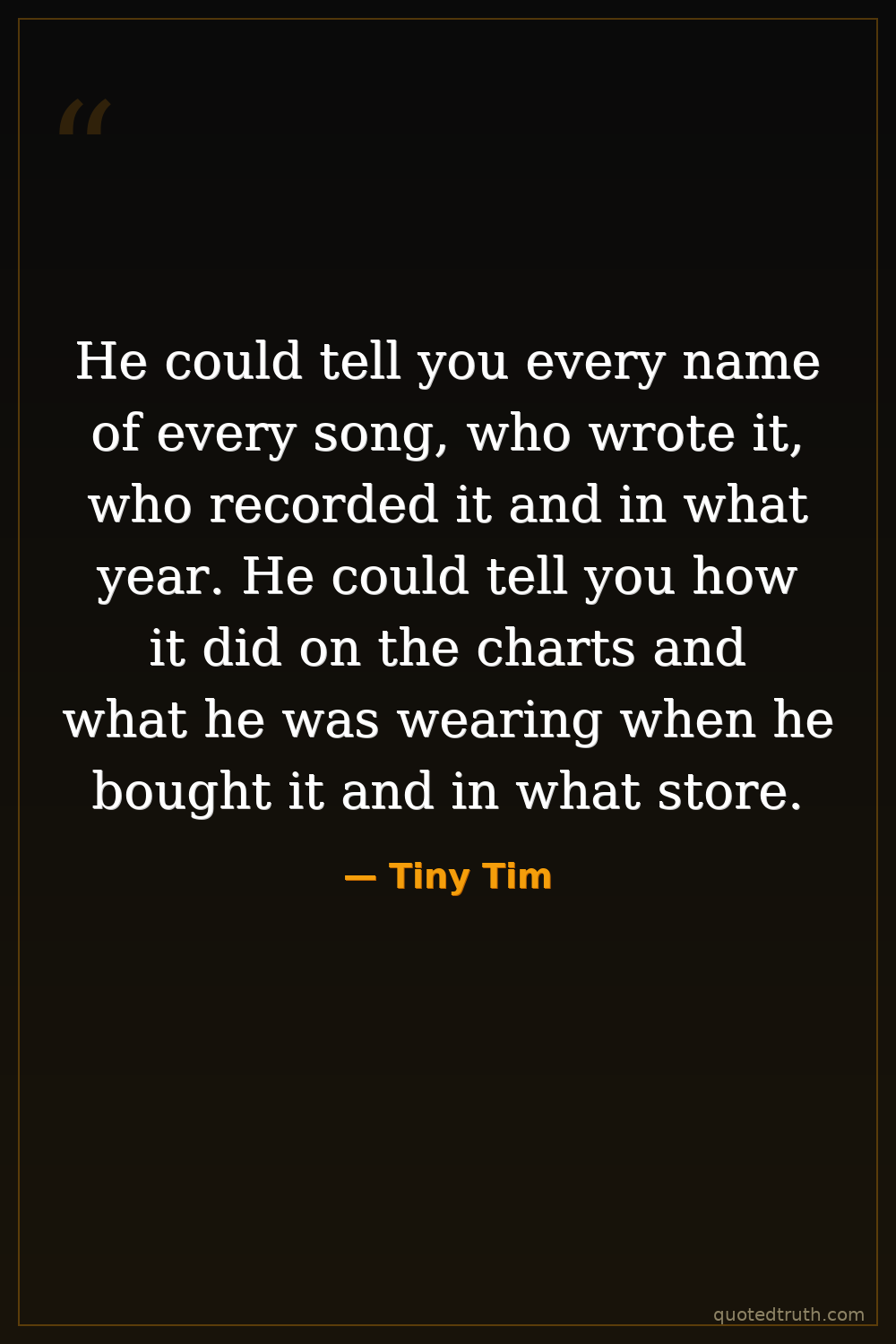He could tell you every name of every song, who wrote it, who recorded it and in what year. He could tell you how it did on the charts and what he was wearing when he bought it and in what store.