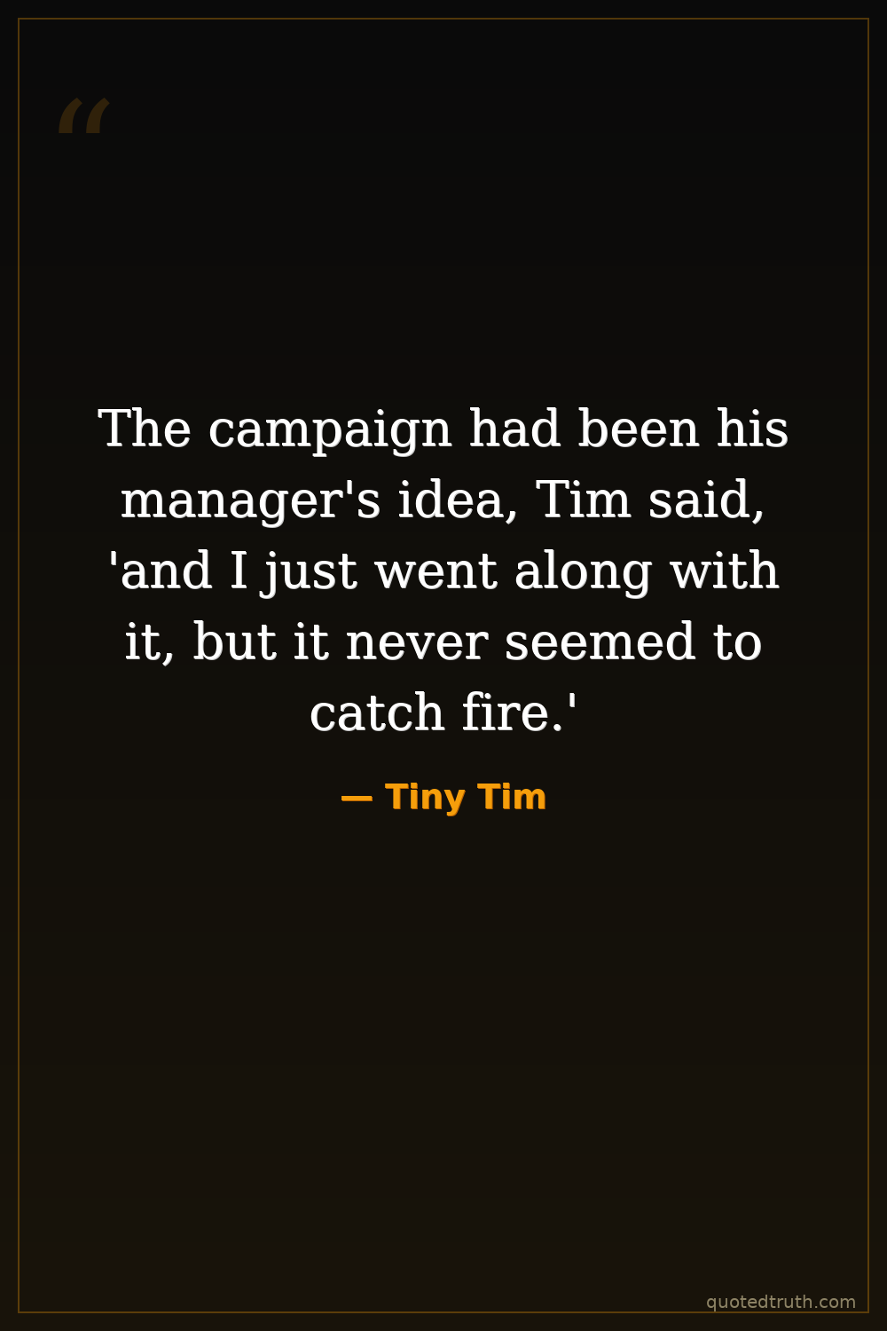 The campaign had been his manager's idea, Tim said, 'and I just went along with it, but it never seemed to catch fire.'