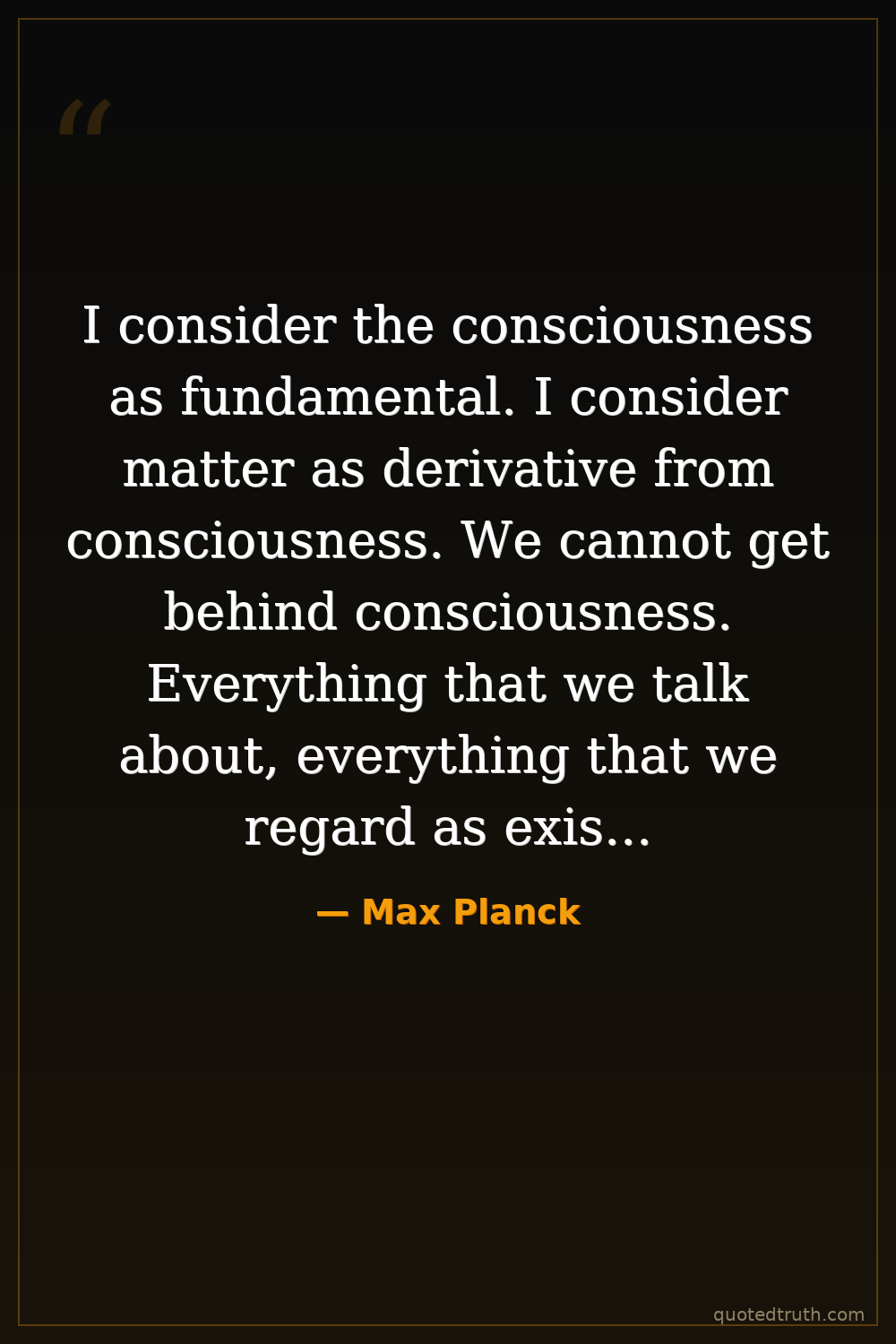 I consider the consciousness as fundamental. I consider matter as derivative from consciousness. We cannot get behind consciousness. Everything that we talk about, everything that we regard as existing, postulates consciousness.