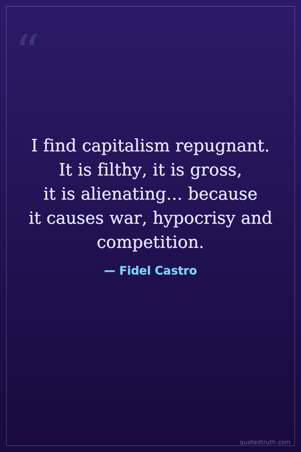 I find capitalism repugnant. It is filthy, it is gross, it is alienating... because it causes war, hypocrisy and competition.